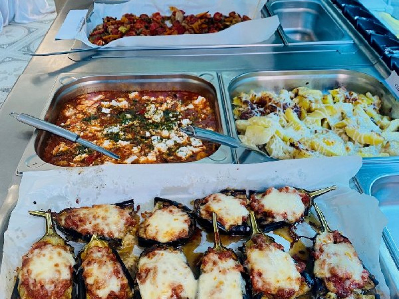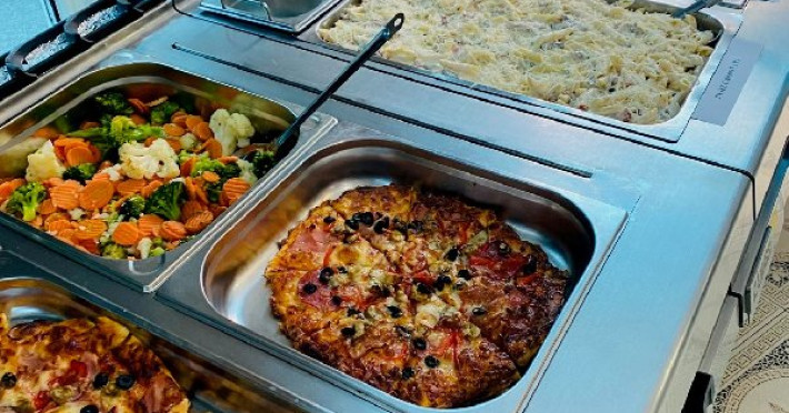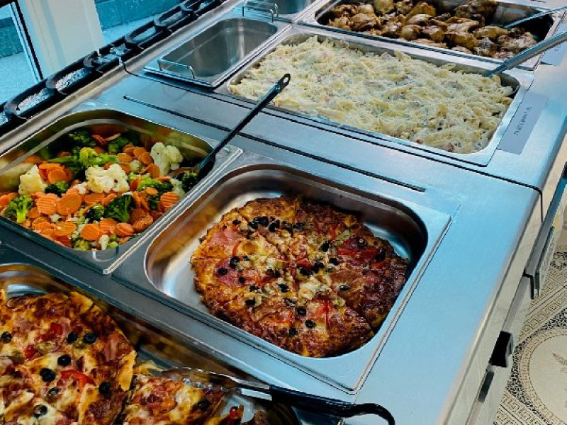 - Cina buffet/ a la carte (luni-vineri 18:00-20:00): preparate din carne, gratar, pizza, paste, salate, garnituri, deserturi, bauturi racoritoare carbogazoase si necarbogazoase, vin, bere.