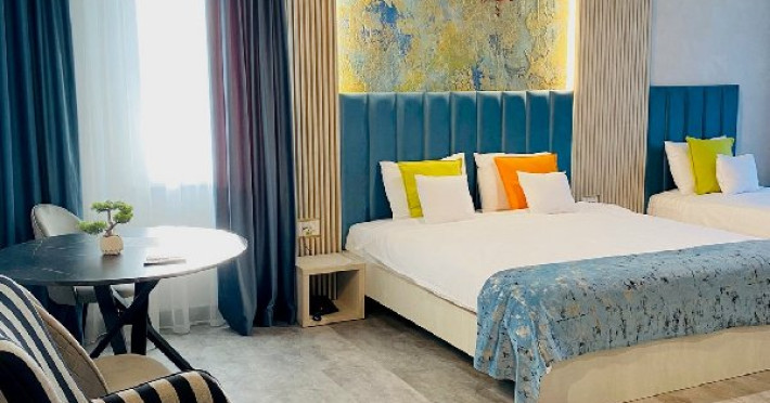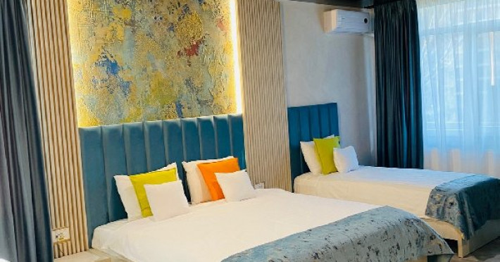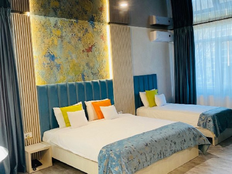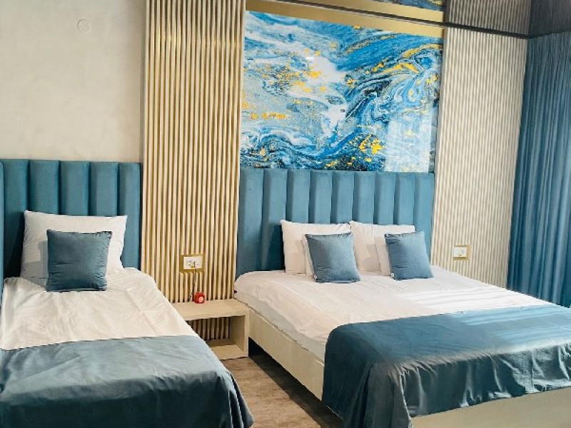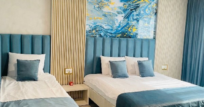 APARTAMENT: 2 paturi duble extra-large (185x200cm) sau 1 pat dublu si doua twin, aer conditionat, minibar, televizor LCD, saltea SuperOrthoLux Optima, cabina de dus cu hidromasaj, uscator de par, prosoape de plaja gratuite.