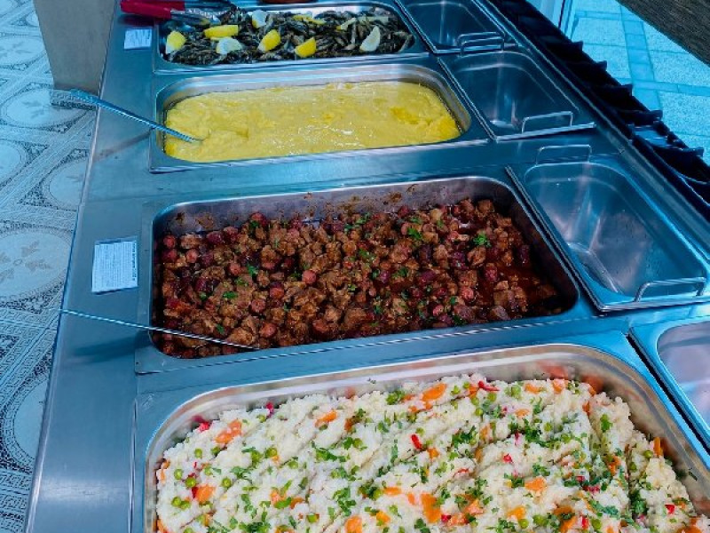 - Pranz buffet/ a la carte (luni-vineri 13:00-15:00): o ciorba/supa, aperitive, preparate din carne, mancare gatita, garnituri, salate, desert, bauturi racoritoare carbogazoase si necarbogazoase, vin, bere.