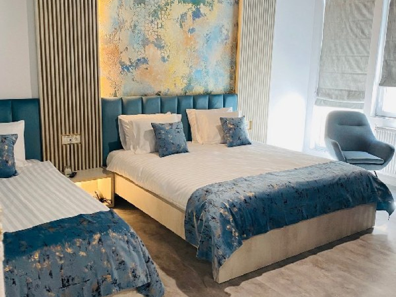 TRIPLE EXECUTIVE: Corp nou, construit in 2020, mobilier modern, pat Queen (160 x 200 cm) + Single (90 x 200 cm), Samsung Smart TV + Netflix, produse cosmetice EcoNatural, oglinda de machiaj si uscator de par, seif, aer conditionat, minibar, prosoape de plaja gratuite, espressor Caffisimo.