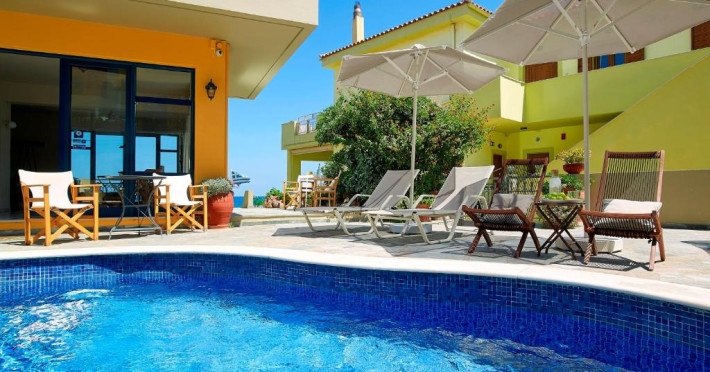 Situat in satul de pescari Panormos, Marelina oferă camere cu o chicinetă și balcon cu vedere la mare sau la piscină. Acesta are piscină și acces gratuit la internet WiFi in zonele sale comune.
