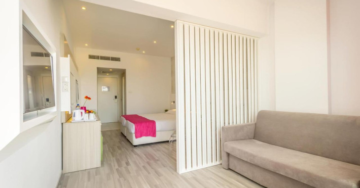 Camerele luminoase de la Margadina Hotel sunt dotate cu aer condiționat, Tv și seif. Fiecare cameră dispune de un aparat pentru preparare cafea sau ceai, cană-fierbător și minibar. Oaspeții pot solicita serviciul de room service pentru a servi masa sau diverse băuturi. În camere există baie cu cadă sau duș ce are în dotare foehn și articole de toaletă gratuite. Camerele au balcon cu vedere la mare sau la grădină. Oaspeții au acces gratuit la serviciul Wi-fi în camere. Curățenia in cameră se face zilnic. Proprietatea oferă camere pentru familie cu o suprafață mai mare și un număr mai mare de paturi față de cele standard.