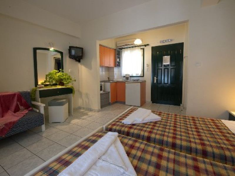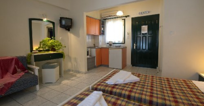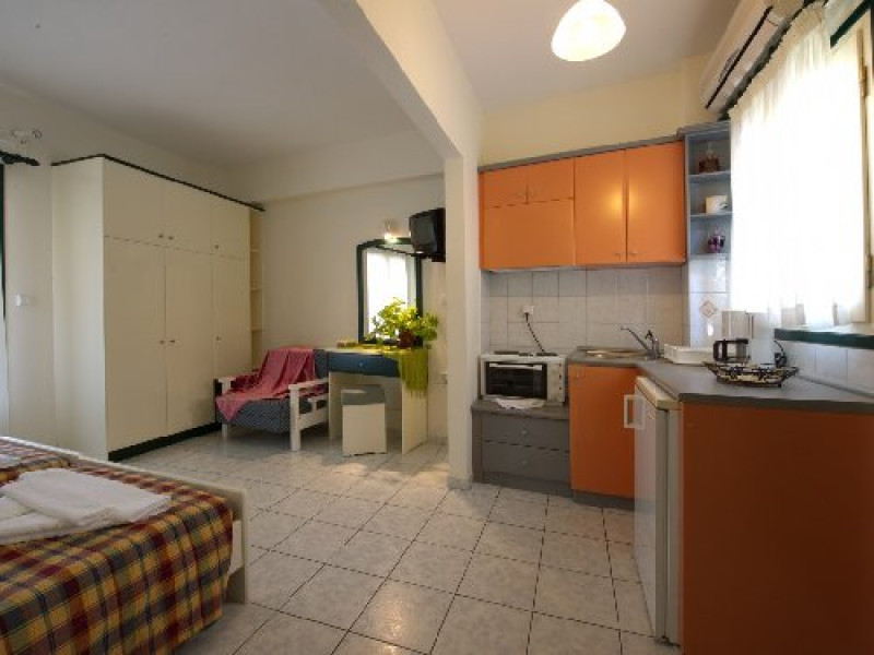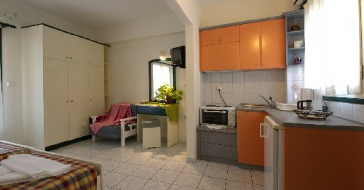 Studiourile ofera chicineta, cuptor cu microunde, frigider, toaleta cu dus, TV si un balcon mare mobilat cu masa si scaune.