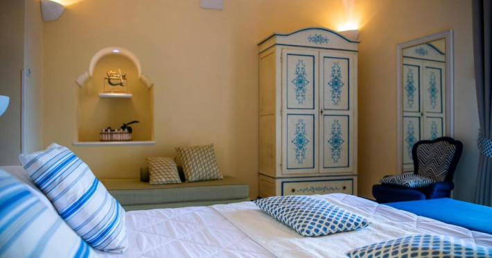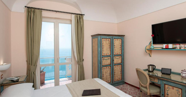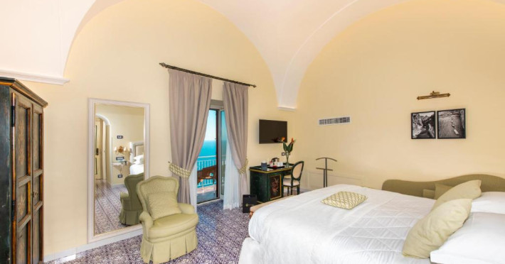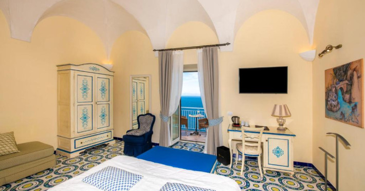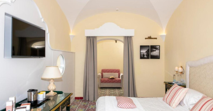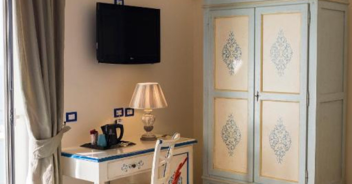 Camerele sunt dotate cu TV LCD cu peste 200 de canale Sky si internationale, minibar si WiFi gratuit. Decorul este clasic, cu mobilier traditional si majolică. Baia privată are articole de toaletă naturale.