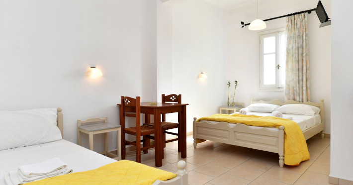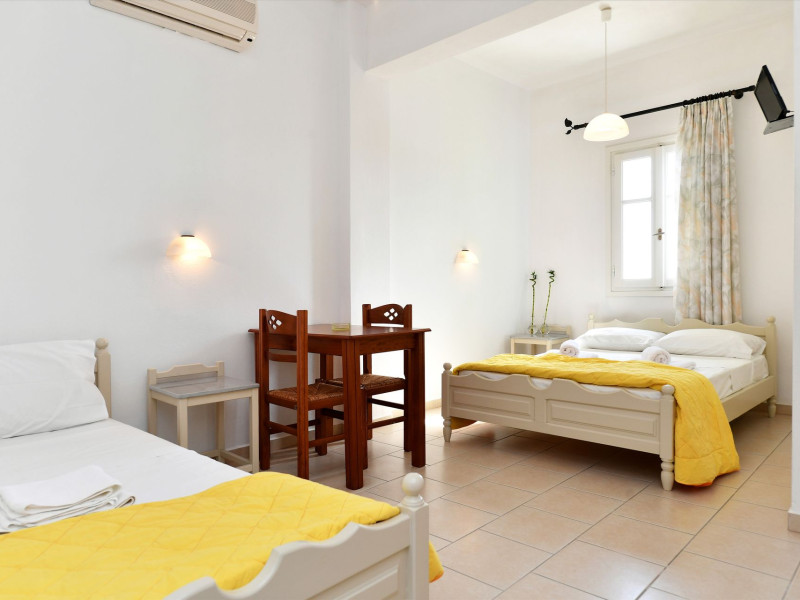 In a pleasant family environment in Naoussa, Paros, only 900m from the seaside, are the situated our rooms, fully furnished and with all modern amenities, individual kitchen, bathroom, TV, air-condition, daily service, individual verandas and parking.Datorita dinamicitatii domeniului disponibilitatea ofertelor se modifica de la un moment la altul. De aceea ofertele sunt valabile in limita locurilor disponibile. Agentia nu este responsabila pentru eventualele neconcordante care pot aparea intre informatiile privind tarifele si alte detalii din site si informatiile primite in agentie. In aceste cazuri vor avea prioritate, intotdeauna, informatiile primite in agentie.
