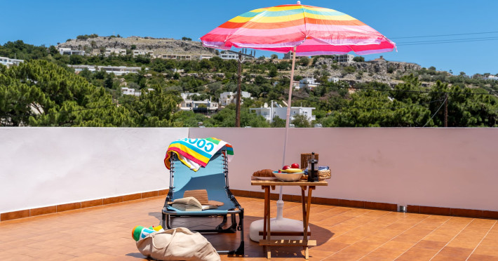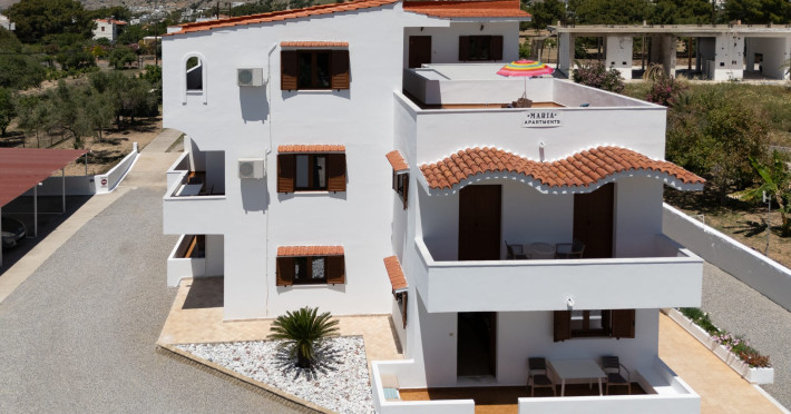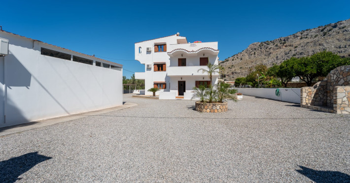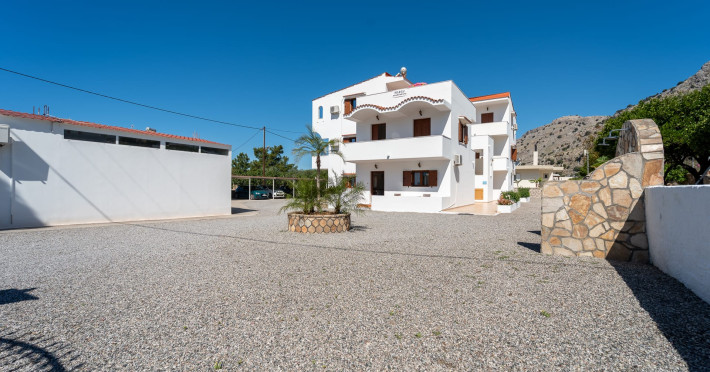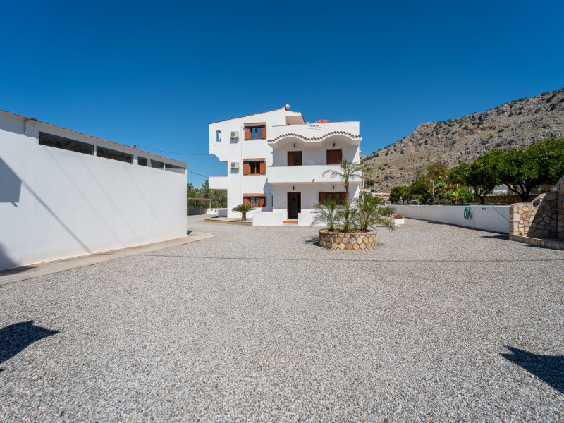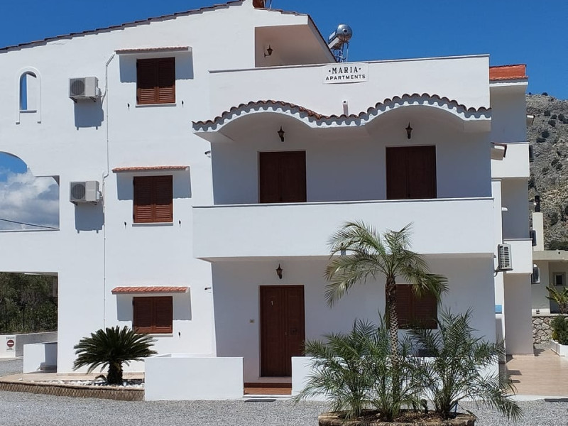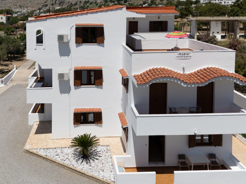 Maria Apartments is an attractive block of nine apartments built on three floors, ground, first and second floors on the Main Beach Road in Pefkos. We offer four two-bedroom apartments, two, one-bedroom apartments and three studio apartments. Each apartment has soundproof windows and doors, its own entrance and key and spacious private verandahs with good views over the surrounding area and our own private gardens. There is CCTV located on the car parking area and front courtyard area. The property has a covered car parking space and also off-road carparking. The property is 200 meters from Pefkos main beach, 1km from Plakia beach and 1.5km from Kavos beach. 4km from the village of Lindos and 6km from the village of Lardos.Maria Apartments is an attractive block of nine apartments built on three floors, ground, first and second floors on the Main Beach Road in Pefkos. We offer four two-bedroom apartments, two, one-bedroom apartments and three studio apartments. Each apartment has soundproof windows and doors, its own entrance and key and spacious private verandahs with good views over the surrounding area and our own private gardens. There is CCTV located on the car parking area and front courtyard area. The property has a covered car parking space and also off-road carparking. The property is 200 meters from Pefkos main beach, 1km from Plakia beach and 1.5km from Kavos beach. 4km from the village of Lindos and 6km from the village of Lardos.