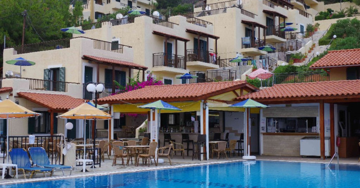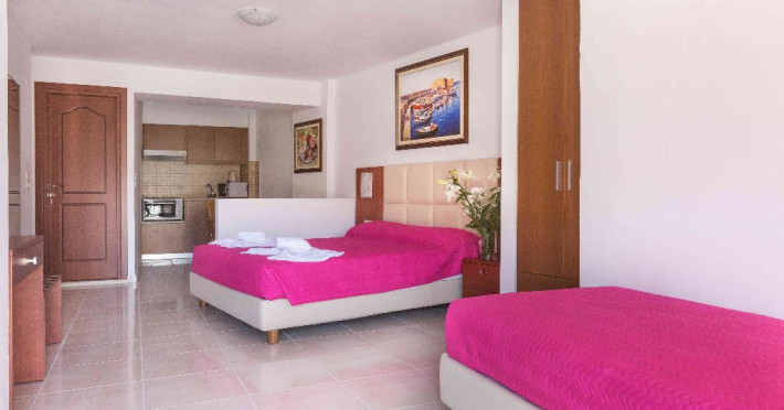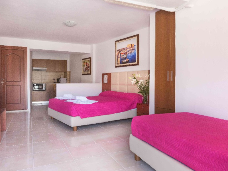 Descriere apartamente: Acest complex de apartamente a fost constuit in anul 1987, iar in anul 2017 a fost renovat partial. Se afla la aproximativ 25 km de aeroportul din Heraklion.Localizare: amplasat intr-o zona linistita, aproape de centul statiunii Stalida, la 700 m de plaja cu nisip.
