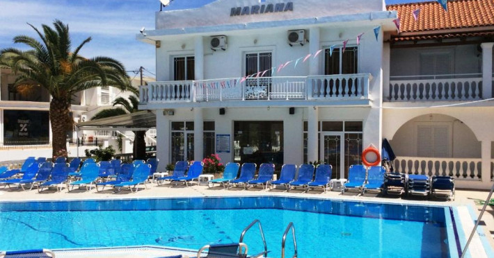 Mariana este o proprietate de 3 stele situată în Laganas (Zakynthos) care oferă un restaurant și o piscină în aer liber cu șezlonguri și umbrele de soare. Proprietatea are recepție cu program non - stop, unde clienții sunt întâmpinați cu ospitalitate în orice moment al zilei. Se oferă acces gratuit la internet Wi-fi în spațiile publice. Parcarea este disponibilă la proprietate gratuit.