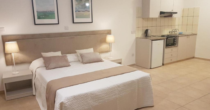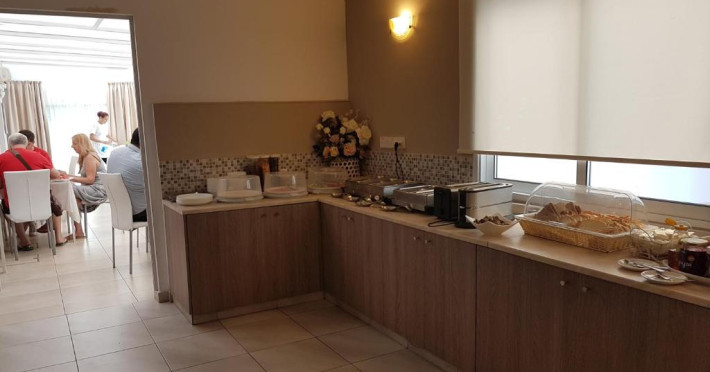 Oaspeții se pot bucura de piscina exterioară inconjurată de șezlonguri și umbrele, perfectă pentru momentele de relaxare sub soarele cipriot. Restaurantul hotelului servește preparate din bucătăria internațională și specialități cipriote autentice.
