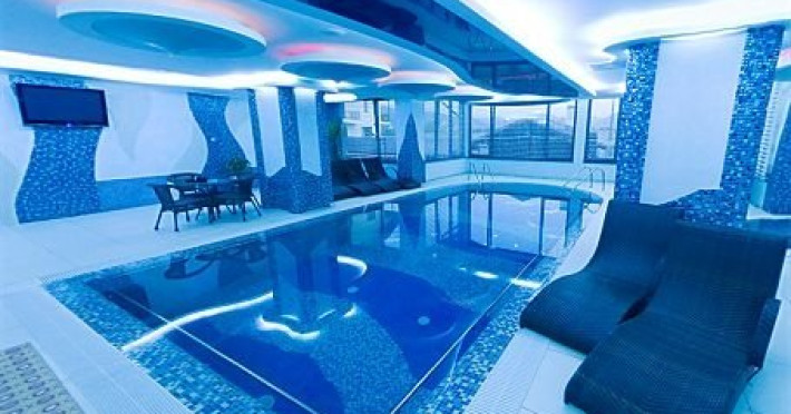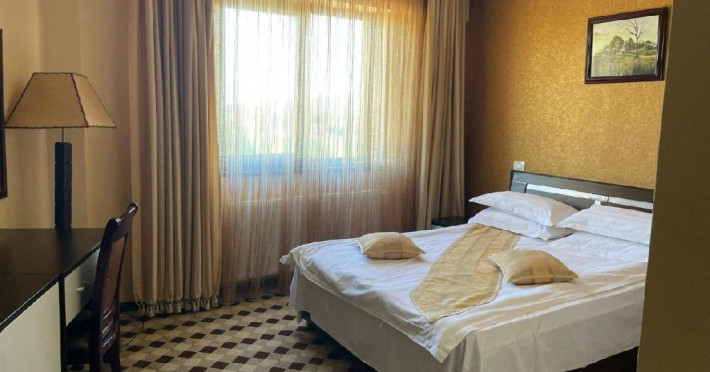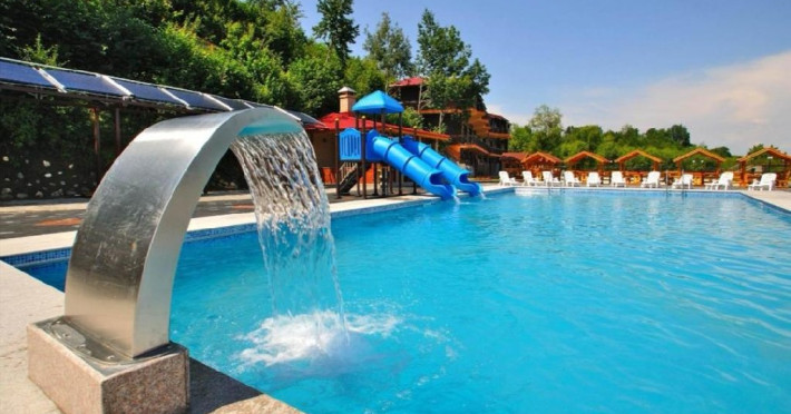Alte dotari: bar restaurant, bar receptie, 2 sali de conferinta cu 60 de locuri, piscina, jacuzzi, sauna, sala de fitness si biliard, sali de masaj si tenis de masa, teren de sport multifunctional cu nocturna, parc de distractie copii, foisor cu barbeque, parcare pazita - 60 locuri.