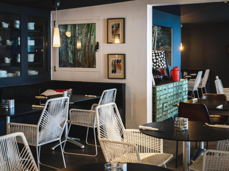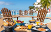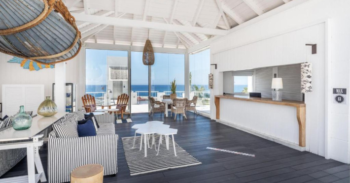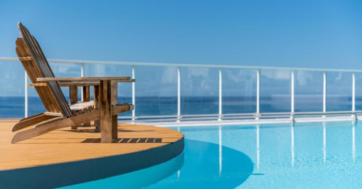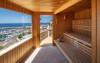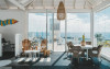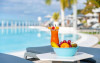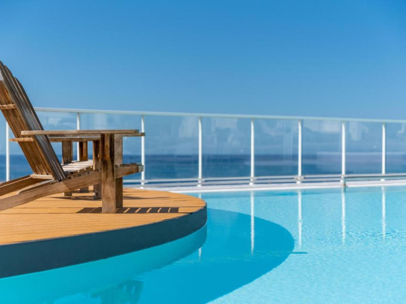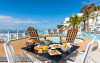 Restaurantul de langă piscină are vedere superbă la port.