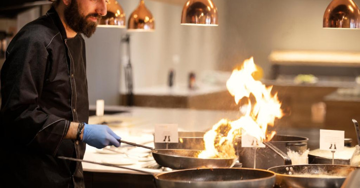 La Marina Beach Hotel oaspeții au la dispoziție un restaurant care servește mâncare în stil bufet. Preparate din bucătăria internațională așteaptă să fie degustate în fiecare zi la micul dejun, prânz și cină. Masa poate fi servită atât în interior, cît si în aer liber, pe terasă, în funcție de vreme. Oaspeţii pot avea diverse băuturi răcoritoare sau alcoolice la bar. Pentru cei cu anumite nevoi de nutriție, Marina Beach Hotel oferă meniuri pentru diete speciale.