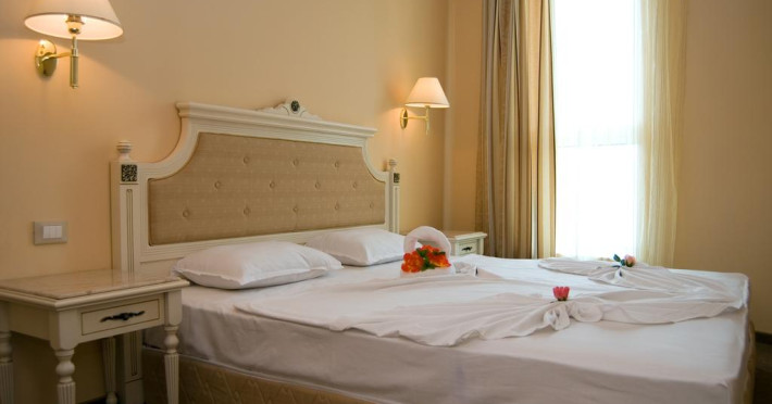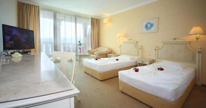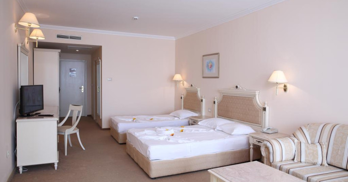 Hotelul este dotat cu restaurant, bar, internet cafe, discoteca, schimb valutar, seif, lift, centru de prim ajutor, inchirieri auto, darts, boccia, aerobic, jacuzzi, sauna, masaj, fitness, salon de infrumusetare, coafor, teren tenis, volei, fotbal, tir cu arcul, loc de joaca pentru copii, gimnastica, animatie, gradinita, piscina pentru adulti, piscina pentru copii, parcare. Pot fi utilizate toate serviciile complexului cu exceptia serviciilor oferite de Hotelul Marina Royal Palace.