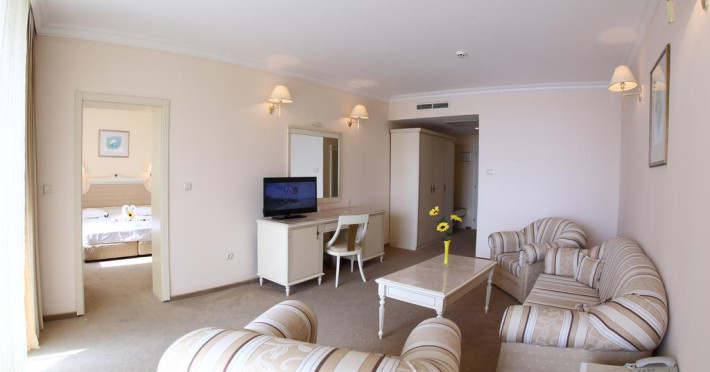 Marina Beach este situat intr-o mica vale, la doar cateva trepte pana la marea cu plaja de nisip fin. Avand o pozitie unica, direct pe plaja, hotelul ofera o vedere panoramica fantastica asupra intregului golf. Hotelul Marina Beach este alegerea perfecta pentru cei care apreciaza luxul de cinci stele, confortul si vacanta relaxanta.Facilitati camere