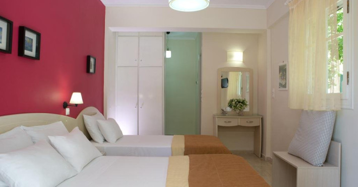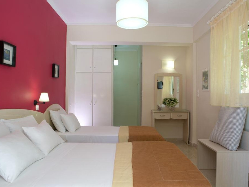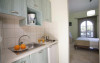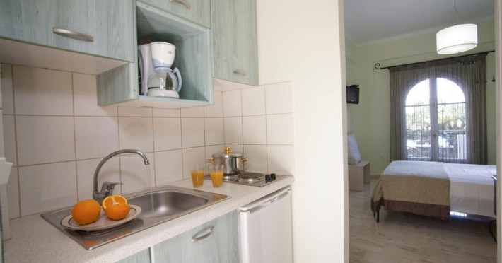 Facilitati camere: Toate studiourile au balcon, cu vedere la piscina si gradina, AC, TV. Chicineta este utilata cu strictul necesar, are, plita si aparat de cafea.