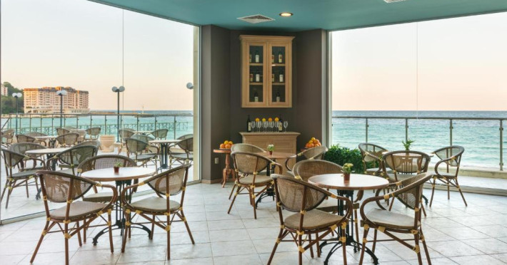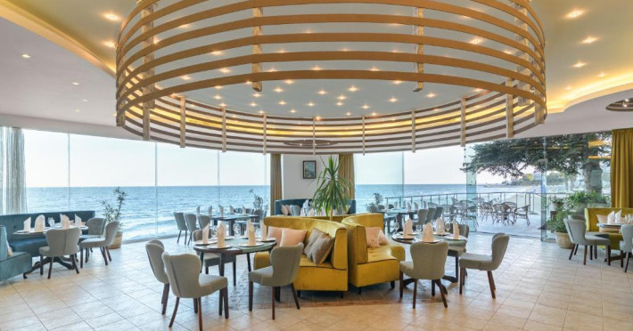 La Marina oaspeții au la dispoziție un restaurant care servește mâncare în stil bufet și à la carte. Preparate din bucătăria internațională și preparate pescărești așteaptă să fie degustate în fiecare zi la micul dejun, prânz și cină. Masa poate fi servită atât în interior, cît si în aer liber, pe terasă, în funcție de vreme. Sunt disponibile 2 baruri unde oaspeții pot avea diverse băuturi răcoritoare sau alcoolice. Pentru cei cu anumite nevoi de nutriție, Marina oferă meniuri pentru diete speciale.