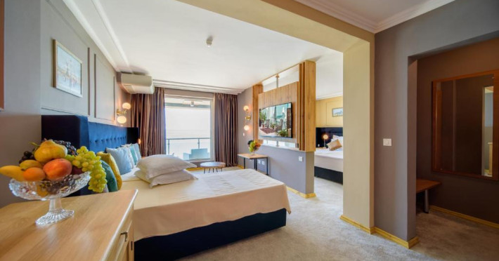 Sunt disponibile 187 camere. Unele camere au balcon cu vedere la mare, unde oaspeții pot admira apusul sau răsăritul soarelui. Camerele de la Marina sunt dotate cu aer condiționat, Tv cu canale prin satelit și seif. Oaspeții au la dispoziție serviciul de room service pentru a servi masa sau diverse băuturi. În camere există baie cu cadă sau duș prevăzută cu foehn. Oaspeții au acces gratuit la serviciul Wi-fi în camere. Curățenia in cameră se face zilnic. Fiecare unitate de cazare are frigider. Proprietatea oferă camere pentru familie cu o suprafață mai mare și un număr mai mare de paturi față de cele standard. Se pot rezerva de asemenea camere pentru nefumători.