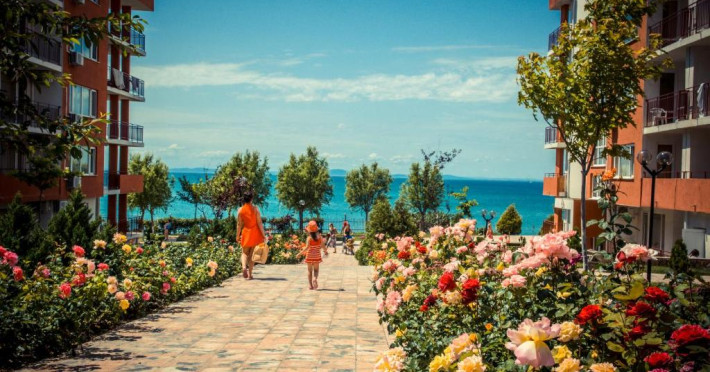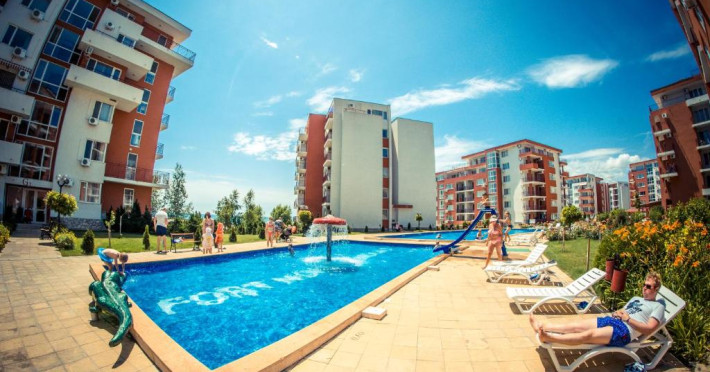 Situat in Sveti Vlas, chiar pe malul mării, Marina View Fort Beach oferă apartamente dotate cu aer conditionat si acces gratuit la internet Wi-Fi. Proprietatea asigură 10 piscine in aer liber gratuite, unele cu valuri artificiale. Există parcare privată gratuită. Plaja este la 100 de metri de Marina View Fort Beach.
