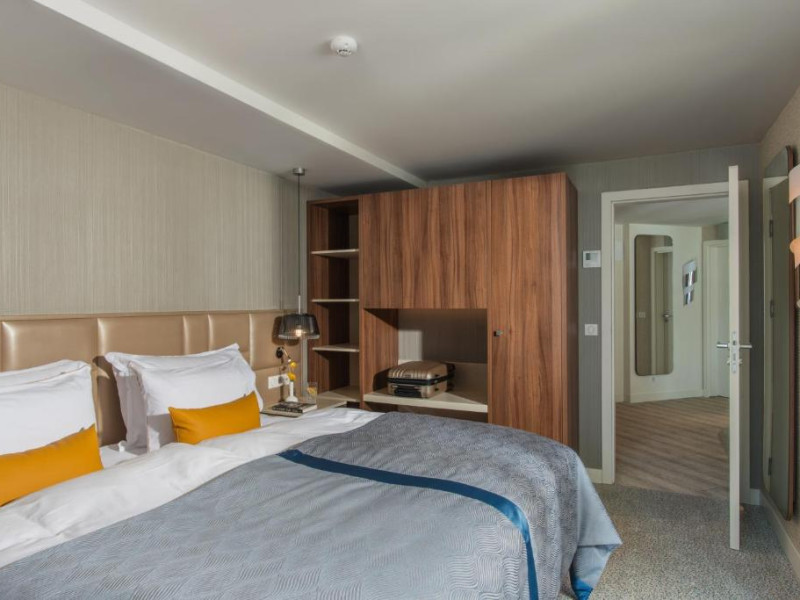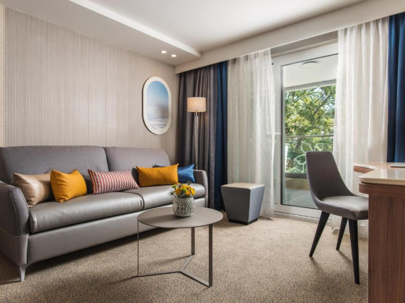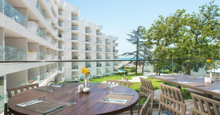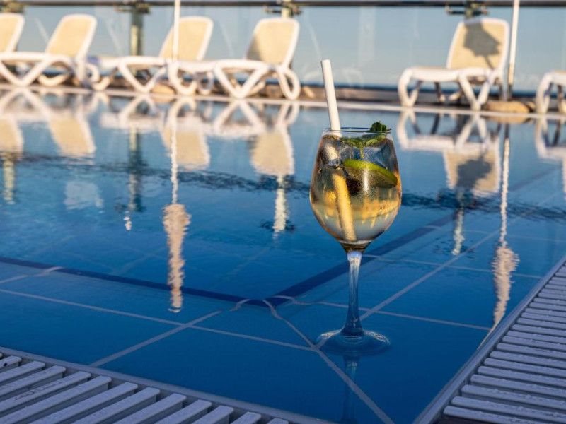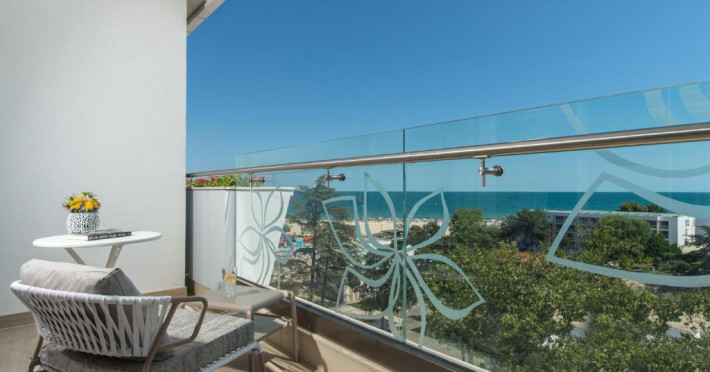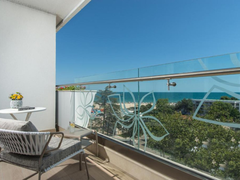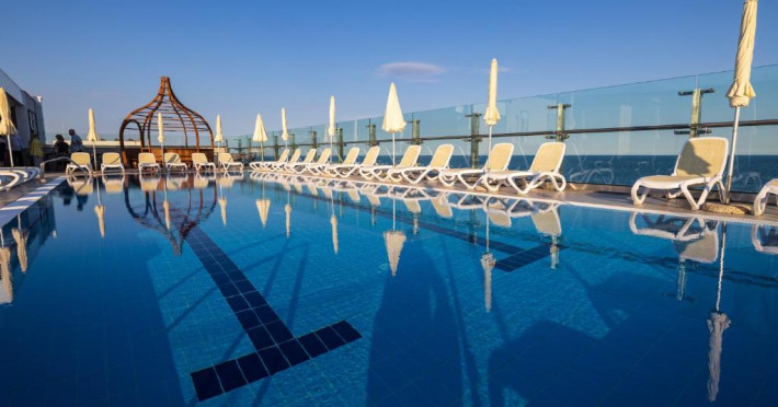Hotelul oferă gratuit 1 umbrelă și 2 șezlonguri per cameră, de la al treilea rand de la mare către promenada de pe plajă, primul și al doilea rand cu umbrele și șezlonguri fiind plătite la prețul oficial al serviciului. Accesul la piscina cu bar de pe acoperiș este disponibil la un cost suplimentar.