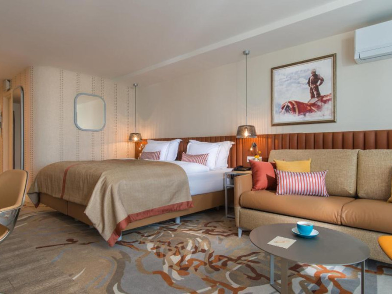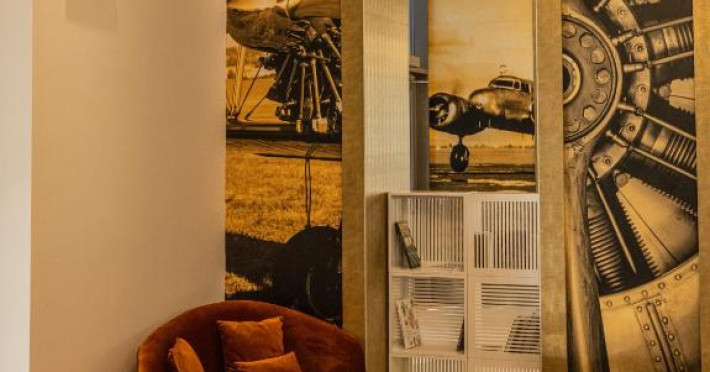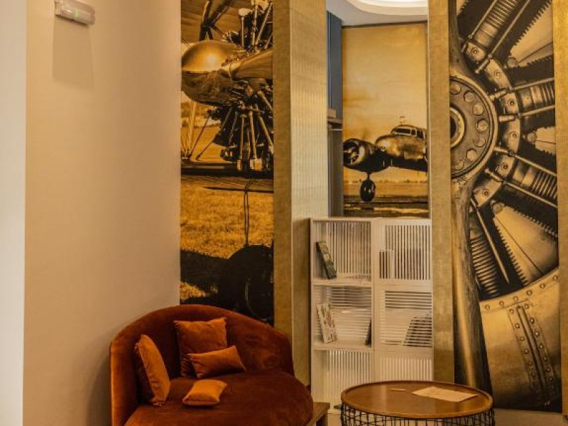Camerele sunt mobilate elegant, in concordanță cu tematica hotelului - aviația.