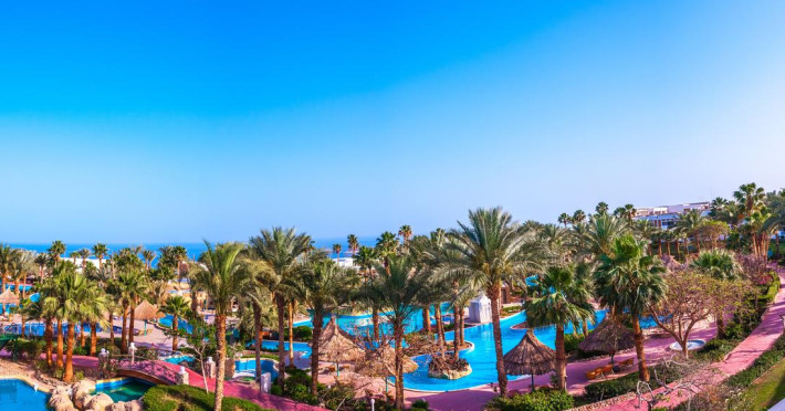 "Localizare:Hotelul se afla intr-o zona linistita, aproape de plaja din Golful Um Maikha - putin mai departe de plaja, in gradina hotelului se afla si un teren de golf cu 18 gauri. Distanta fata de aeroport este de 5 km, fata de centrul orasului de 7 km. Hotelul asigura transfer gratuit in centrul orasului cu microbuz. Facilitati camere: Hotelul dispune de 418 camere dotate cu baie proprie, uscator de par, telefon direct, tv satelit, facilitate pentru prepararea ceaiului/cafelei, minibar, balcon.La cerere camere pentru persoane cu handicap locomotor. Facilitatile hotelului: 12 restaurante, baruri, centru spa, sauna, bai de abur, sala fitness, shuttle bus pana in Naama Bay, internet wireless in lobby, banca, bancomat, schimb valutar, servicii de curatatorie si spalatorie, salon de infrumusetare, coafor, magazine de souveniruri, magazin specializat golf. Sport si agrement:Hotelul dispune de unul dintre cele mai bune terenuri de golf din Egipt, 4 terenuri de tenis, sala fitness, aerobic, centru spa si wellness, masaj thailandez, teren de joaca, miniclub pentru copii de 3-12 ani, cursuri de scufundari. Piscina:hotelul dispune de 2 piscine, piscina principala, incalzita si piscina Royal Wing unde gasiti o sectiune Jacuzzi. Facilitati pentru copii:piscina incalzita pentru copii, miniclub, animatie in timpul zilei, mini aqua park. Plaja: Hotelul dispune de plaja privata.Localizare