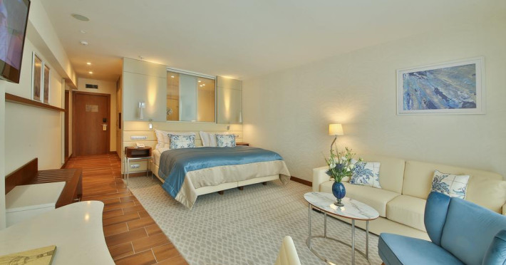 Hotelul are un restaurant a la carte si unul tip bufet, baruri, club, piscină în aer liber cu vedere la mare, o piscină interioară şi un centru spa cu o varietate de tratamente. Pe langa recepţia cu program non-stop, in incinta hotelului se afla si un bancomat şi un salon de coafură. Printre serviciile şi facilităţile disponibile se numără un loc de joacă pentru copii şi personal de divertisment.