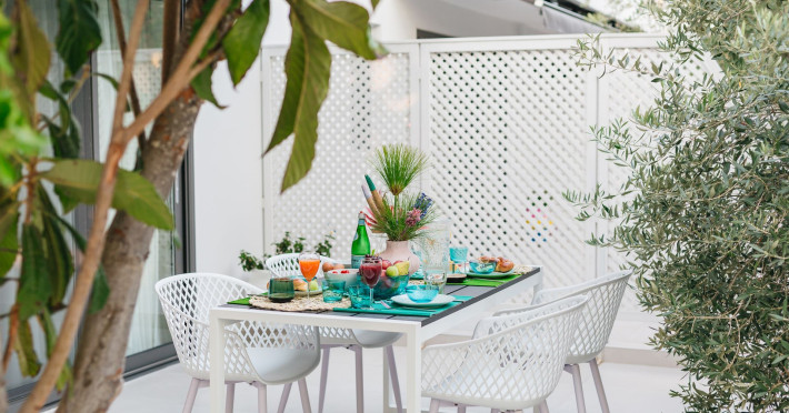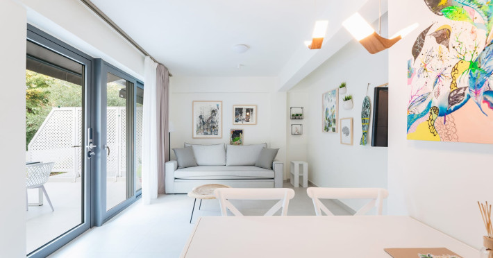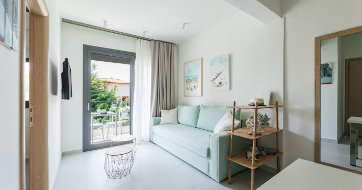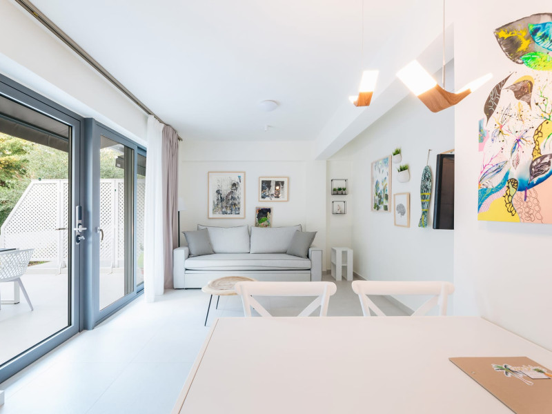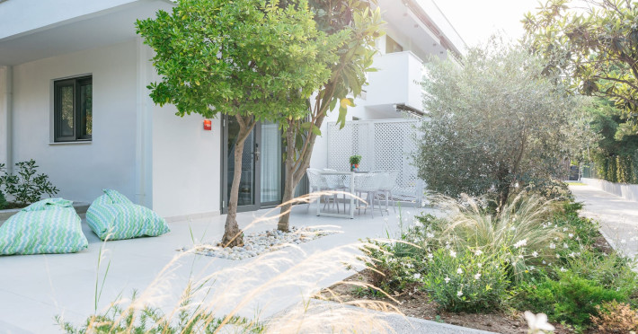 Mariya art living is a newly-built complex of luxury holiday apartments, near the fishing village of Skioni, just a few steps from the picturesque seaside of Κassandra chalkidiki. Mariya art living consists of eight fully furnished, self-catering apartments, in an innovative contemporary building. Surrounded by a lush garden with aromatic herbs, olive and citrus trees, you immediately experience the sense of relaxation, serenity and privacy. Just 60 meters away, you will find one of the most pristine and clear beaches of Κassandra. Each apartment is uniquely decorated with fine art paintings and handcrafted artisanal objects, wrapped up in a refined ambience and effortless luxury. Art and nature, comfort and serenity, warm and authentic Greek hospitality are here waiting for you.Datorita dinamicitatii domeniului disponibilitatea ofertelor se modifica de la un moment la altul. De aceea ofertele sunt valabile in limita locurilor disponibile. Agentia nu este responsabila pentru eventualele neconcordante care pot aparea intre informatiile privind tarifele si alte detalii din site si informatiile primite in agentie. In aceste cazuri vor avea prioritate, intotdeauna, informatiile primite in agentie.