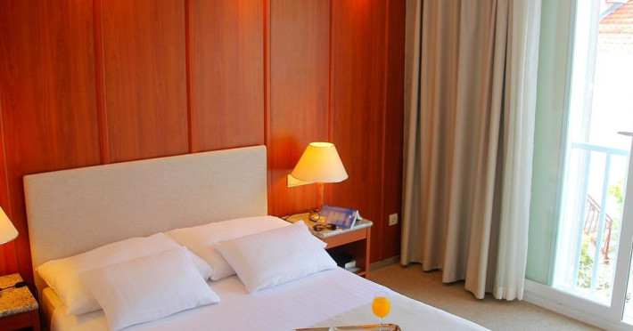 Hotelul Marko Polo din Korčula a fost recent renovat. Hotelul este format din sala de receptie, restaurant cu aer conditionat, cafe-bar, un bar aperitiv, un magazin de suveniruri si salon TV. Camerele standard sunt dotate cu telefon, minibar, SAT TV, cadă sau duș, WC, uscător de păr, seif, aer condiționat și vedere la grădină sau la mare, dimensiunea minimă 14m2. Camerele superioare sunt dotate cu telefon, minibar, SAT TV, cada sau dus, WC, uscator de par, seif, aer conditionat si cu vedere la gradina sau la mare pot avea pat suplimentar, dimensiunea camerei 17-20m2. Facilitati Hotel MARko Polo: sala de receptie, restaurant (aer conditionat), cafenea, restaurant a la carte, magazin de suveniruri, centru de infrumusetare, wellness, fitness, piscina interioara, sala de conferinte, piscina exterioara, animatie pentru copii. Hotelul împarte plaja si facilitati sportive: teren de tenis, inchiriere de biciclete, centru de navigatie si windsurfing, minigolf. Plaja hotelului este formata din pietris și stanca.Facilitati Hotel