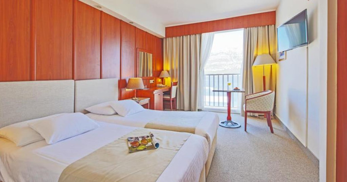 Hotelul Marko Polo din Korčula a fost recent renovat. Hotelul este format din sala de receptie, restaurant cu aer conditionat, cafe-bar, un bar aperitiv, un magazin de suveniruri si salon TV. Hotelul mai dispuned de sala de receptie, restaurant (aer conditionat), cafenea, restaurant a la carte, magazin de suveniruri, centru de infrumusetare, wellness, fitness, piscina interioara, sala de conferinte, piscina exterioara, animatie pentru copii. Hotelul împarte plaja si facilitati sportive: teren de tenis, inchiriere de biciclete, centru de navigatie si windsurfing, minigolf.