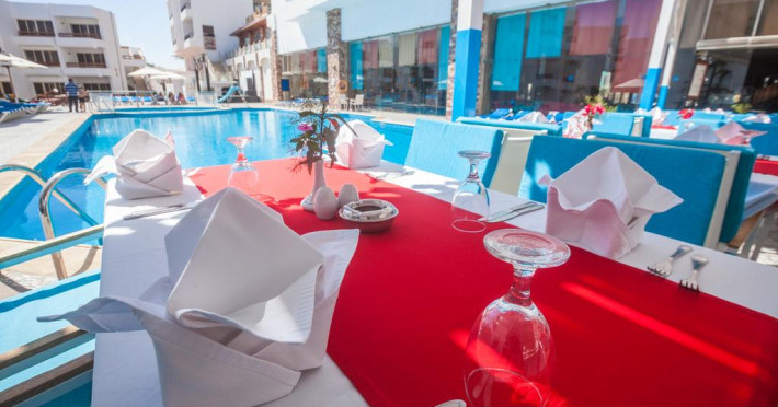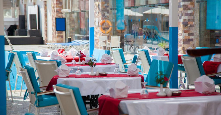La Marlin Inn Azur Resort oaspeții au la dispoziție un restaurant care servește mâncare în stil bufet. Masa poate fi servită atât în interior, cît si în aer liber, pe terasă, în funcție de vreme. Oaspeţii pot avea diverse băuturi răcoritoare sau alcoolice la bar. În cadrul proprietății există și un snack bar care servește băuturi și gustări. Pentru cei cu anumite nevoi de nutriție, Marlin Inn Azur Resort oferă meniuri pentru diete speciale.