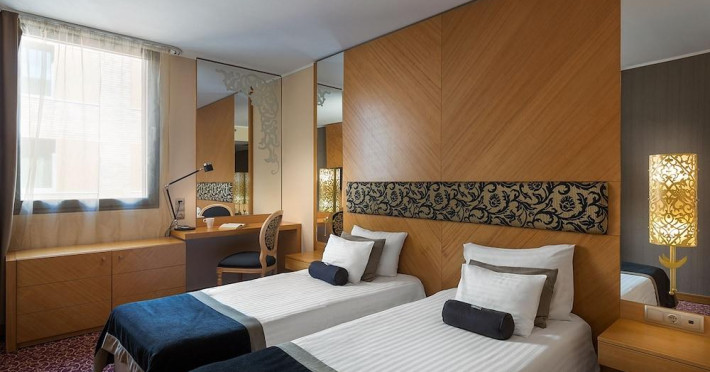 Situado en el corazandoacute;n de la ciudad, justo al lado del Nagykandouml;randuacute;t (Gran Bulevar), este hotel es una gran opciandoacute;n para todos los visitantes de Budapest. Como el nombre de la calle sugiere, esta es una de las principales arterias de la ciudad y en sus inmediaciones se encuentran la gran mayorandiacute;a de lugares y edificios mandaacute;s emblemandaacute;ticos de la capital handuacute;ngara. Paseando por las inmediaciones, se puede visitar el magnandiacute;fico edificio del Parlamento, la basandiacute;lica de San Esteban y disfrutar de las magnandiacute;ficas vistas del Danubio y de la ciudad que se extiende a sus orillas, asandiacute; como descubrir las magnandiacute;ficas tiendas y restaurantes ubicados por el centro de la ciudad. Los que prefieran la comodidad del hotel serandaacute;n gratamente sorprendidos por una amplia selecciandoacute;n de cocina internacional que deleitarandaacute; a los comensales, desde los platos a la carta a una autandeacute;ntica cena turca o un menanduacute; de temporada, todo ello bien maridado con una amplia selecciandoacute;n de vinos de calidad.Datorita dinamicitatii domeniului disponibilitatea ofertelor se modifica de la un moment la altul. De aceea ofertele sunt valabile in limita locurilor disponibile. Agentia nu este responsabila pentru eventualele neconcordante care pot aparea intre informatiile privind tarifele si alte detalii din site si informatiile primite in agentie. In aceste cazuri vor avea prioritate, intotdeauna, informatiile primite in agentie.