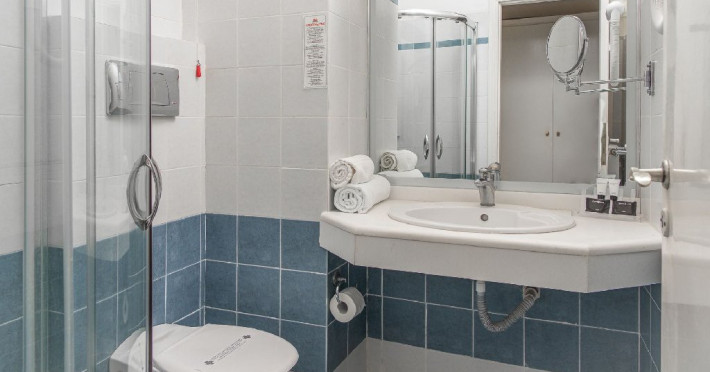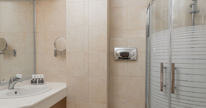 Facilitati camere: Cele 101 de camere sunt dotate cu: AC, TV, WiFi, telefon, seif, frigider, feon, baie cu dus si balcon cu vedere spre mare sau munte/gradina.