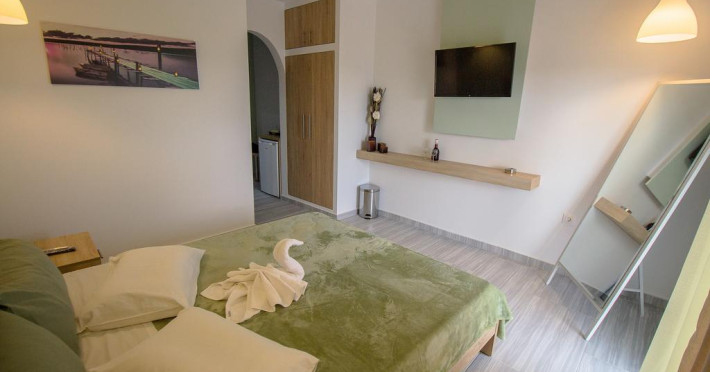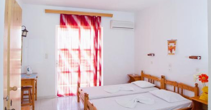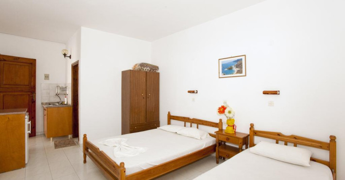 În camere există baie cu cadă sau duș ce are în dotare foehn și articole de toaletă gratuite. Unele camere au balcon cu vedere la mare sau la piscină. Camerele confortabile de la Maroula Studios sunt dotate cu pardoseală de gresie/ marmură, aer condiționat, Tv și seif. Fiecare cameră dispune de cană-fierbător. Oaspeții au acces gratuit la serviciul Wi-fi în camere. Curățenia in cameră se face zilnic. Fiecare unitate de cazare include o chicinetă utilată cu frigider, plită de gătit și ustensile de bucătărie. Proprietatea oferă camere pentru nefumători.