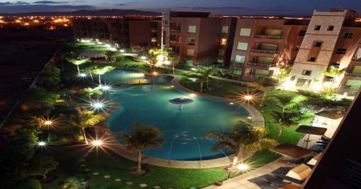 This family-friendly city hotel is nestled amidst a beautiful landscaped garden in a quiet secluded area close to the centre of Marrakech. Its guests will be just a 10-minute drive from the heart of the city and around 15 minutes from the busiest nightclubs and the best restaurants and shops. The train station and the Conference Palace are around 5 km away. Due to its location and facilities the air-conditioned aparthotel is an ideal accommodation choice for family holidays and business trips. All of the well-appointed units come with a kitchenette with a minibar and fridge, a flat-screen TV, an en suite bathroom and a private balcony or terrace where guests can enjoy the pleasant weather. Those who need to refresh or escape from the heat can spend some time under the shade of the palm trees that surround the outdoor lagoon-style swimming pool.This family-friendly city hotel is nestled amidst a beautiful landscaped garden in a quiet secluded area close to the centre of Marrakech. Its guests will be just a 10-minute drive from the heart of the city and around 15 minutes from the busiest nightclubs and the best restaurants and shops. The train station and the Conference Palace are around 5 km away. Due to its location and facilities the air-conditioned aparthotel is an ideal accommodation choice for family holidays and business trips. All of the well-appointed units come with a kitchenette with a minibar and fridge, a flat-screen TV, an en suite bathroom and a private balcony or terrace where guests can enjoy the pleasant weather. Those who need to refresh or escape from the heat can spend some time under the shade of the palm trees that surround the outdoor lagoon-style swimming pool.