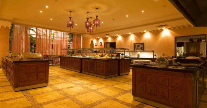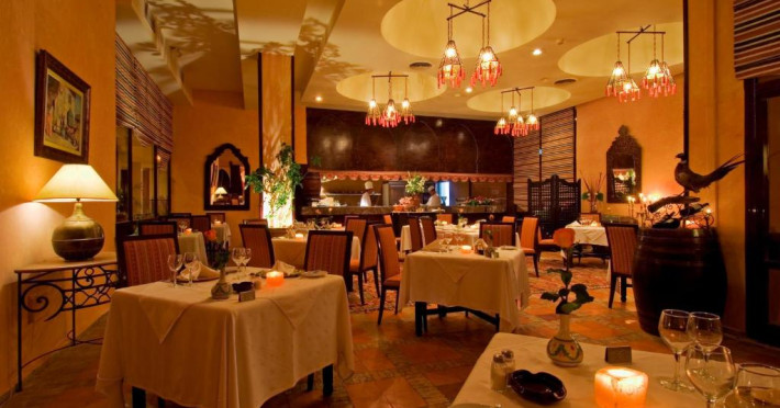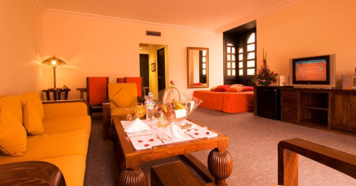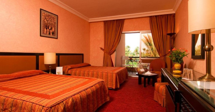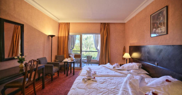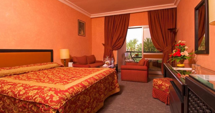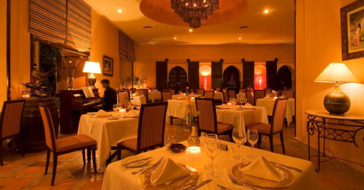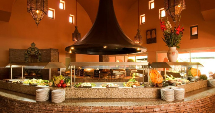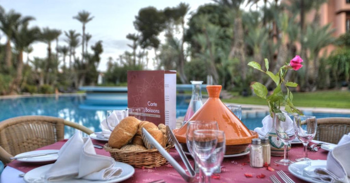 Restaurantul Le Chellah oferă preparate din bucătăria tradițională. Restaurantele La Strada si L'Oasis, ambele situate langă piscină, oferă mancăruri mediteraneene. Barul Aladin are deschidere spre grădini și serveste o gamă largă de băuturi.