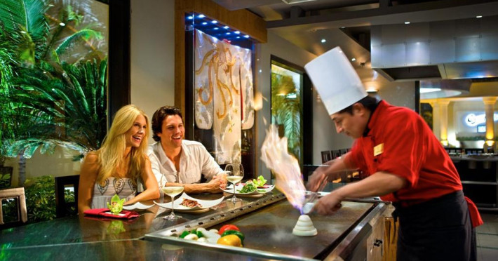 Oaspetii pot lua masa in unul dintre cele 8 restaurante gourmet ale hotelului, inclusiv Mikado Japanese Teppan Yaki and si Sasi Thai.