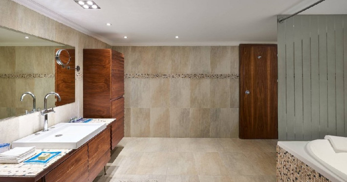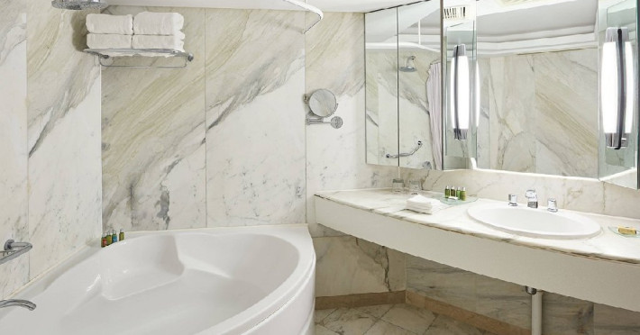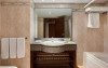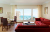 Acest tip de camera are o suprafata de 90 mp/96 mp si un balcon cu vedere la mare. Camera are in dotare pat king size, zona de sedere delimitata de dormitor printr-un perete de intimitate,living separat cu loc de luat masa, aer conditionat, seif, doua TV cu ecran LCD de 32 inchi/81 cm, cablu/satelit, Telefon, WiFi, minibar, facilitati ceai si cafea,masa cu 2 locuri, fier si masa de calcat, doua bai cu marmora cu dus, cada, bideu, uscator par.