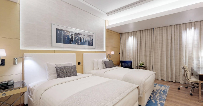 Camerele luminoase de la Marriott Resort Palm Jumeirah sunt dotate cu parchet, aer condiționat, Tv cu canale prin satelit și seif. Fiecare cameră dispune de minibar. Oaspeții pot solicita serviciul de room service pentru a servi masa sau diverse băuturi. În camere există baie cu cadă sau duș ce are în dotare foehn și articole de toaletă gratuite. Unele camere au balcon cu vedere la mare. Oaspeții au acces gratuit la serviciul Wi-fi în camere. Curățenia in cameră se face zilnic. Proprietatea oferă camere pentru familie cu o suprafață mai mare și un număr mai mare de paturi față de cele standard.