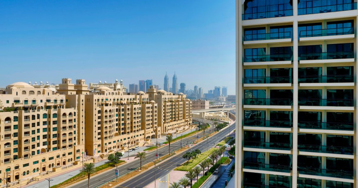41 sqm, 2 queen beds (each 140 cm x 200 cm). View to the Palm Jumeirah (city view) and partial sea view. Maximum occupancy 2 adults and 2 kids below 12 y.o. Baby cot can be placed in the room.