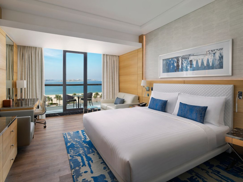 41 sqm, 2 queen beds (each 140 cm x 200 cm). View is subject to availability - to the Palm Jumeirah (city view) and partial sea view OR sea view. Maximum occupancy 2 adults and 2 kids below 12 y.o. Baby cot can be placed in the room. M Club Lounge access.