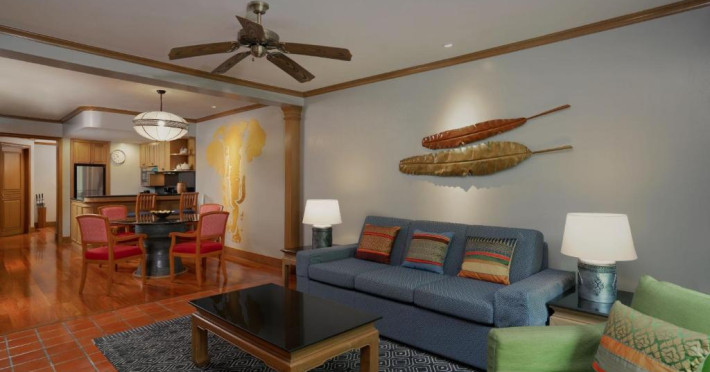 Amenajate cu decor modern, camerele bine amenajate de la Marriott's Phuket Beach Club sunt dotate cu aer condiționat, balcon privat și living. Acestea au mașină de spălat, uscător și TV prin cablu și satelit. Baia privată include o cadă, un uscător de păr și un halat de baie.