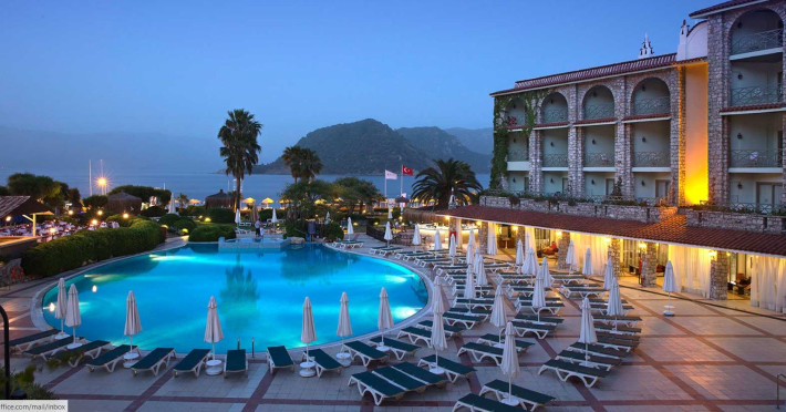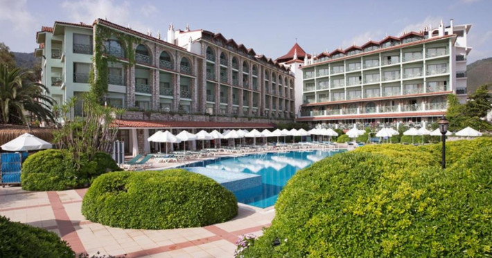 Localizare Hotelul este situat in frumosul Golf Icmeler, pe plaja privată, la distanta de 1 km fata de orasul Icmeler si 5 km de centrul orasului Marmaris. Facilitati hotel Hotelul ofera urmatoarele facilitati: room service, închirieri auto, serviciu de transfer (contra cost), transfer de la/la aeroport (contra cost), recepţie deschisă nonstop, schimb valutar, cameră de bagaje, check-in/check-out privat, spălătorie, curăţătorie chimică, serviciu de călcătorie, fax/copiator, bărbier/salon de frumuseţe. Facilitati camere Camerele sunt dotate cu A/C individual, telefon, uscător de păr, minibar, seif (cu plată), mochetă, TV satelit.Datorita dinamicitatii domeniului disponibilitatea ofertelor se modifica de la un moment la altul. De aceea ofertele sunt valabile in limita locurilor disponibile. Agentia nu este responsabila pentru eventualele neconcordante care pot aparea intre informatiile privind tarifele si alte detalii din site si informatiile primite in agentie. In aceste cazuri vor avea prioritate, intotdeauna, informatiile primite in agentie.