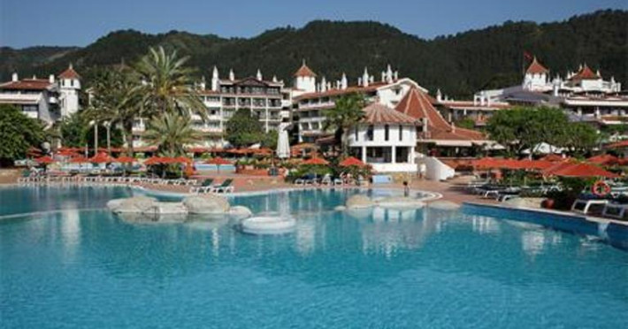 Este situat în Icmeler, langă mare, la 8km de centru stațiunii Marmaris.