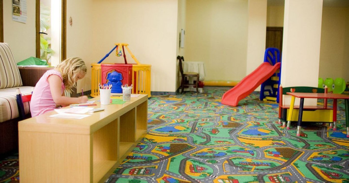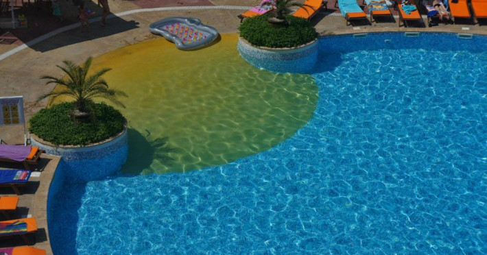 Copiii se pot distra la piscina special amenajată pentru ei.