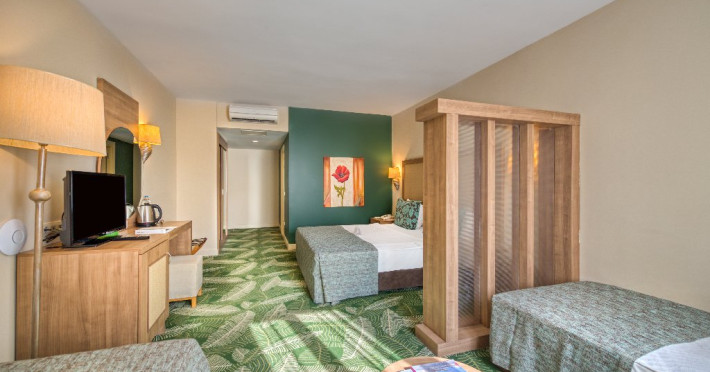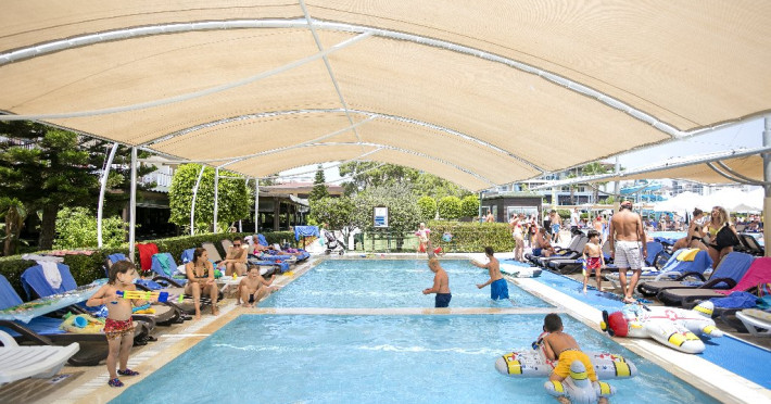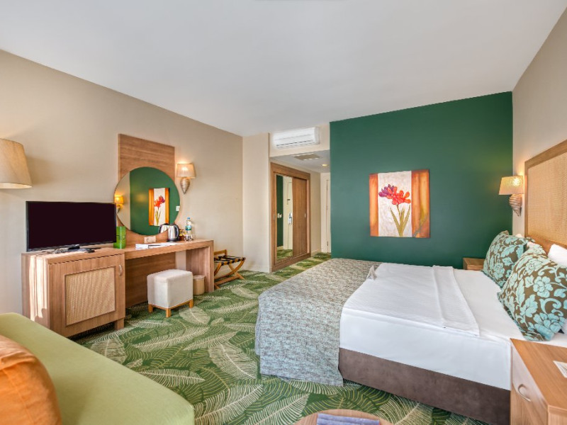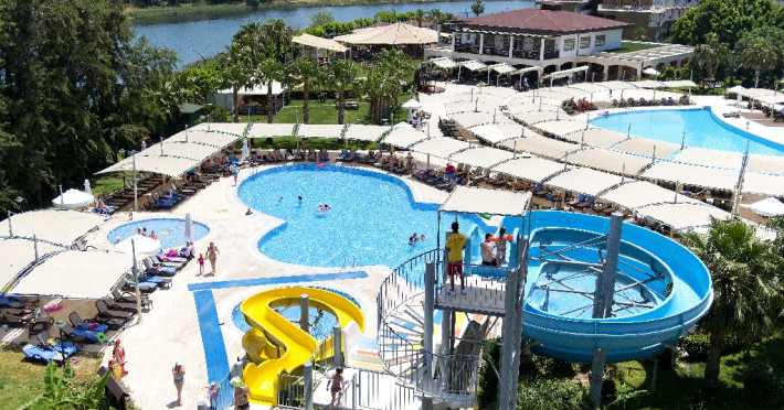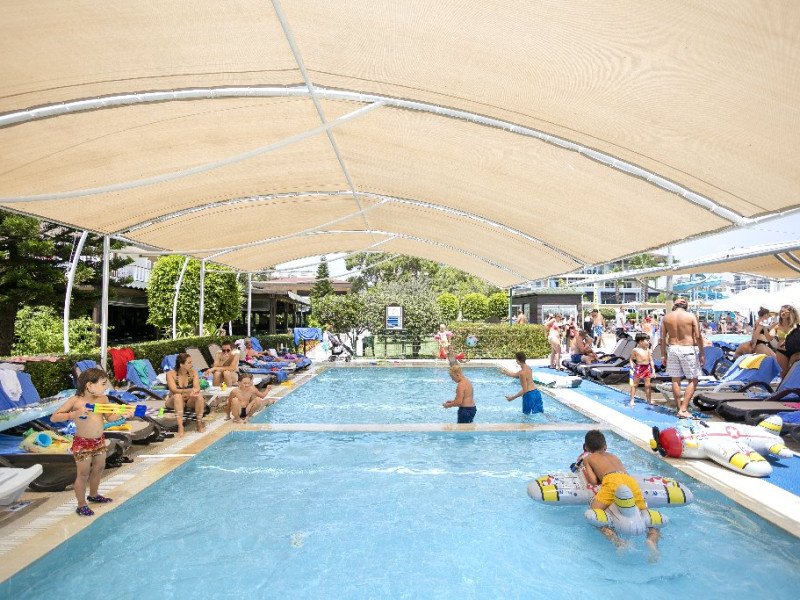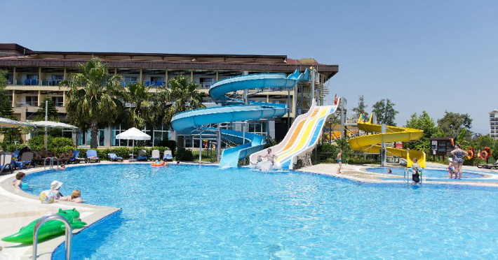 Facilitati hotel: Hotelul ofera oaspetilor sai urmatoarele facilitati: restaurant principal cu meniu special pentru copii, 2 restaurante a la carte cu specific turcesc si italian cu rezervare de 5 euro/pers si un restaurant a la carte cu specific pescaresc cu rezervare de 15 euro/pers. La toate aceste restaurante exista si meniu pentru copii. Alte facilitate incluse in concept sunt: 4 baruri, 2 piscine exterioare pentru adulti, 4 piscine exterioare pentru copii, 1 piscina interioara incalzita cu sectiune pentru copii, piscina cu 3 tobogane, animatie, muzica live, discoteca, mini club, tenis de masa, volei pe plaja, aerobic, darts, centru fitness, baie turceasca, sauna, mini golf, darts, 2 terenuri de tenis cu zgura, scaun special pentru copii in restaurant, camera pentru jocuri, cinema, loc de joaca pentru copii, mini zoo, piscina pentru copii, aquapark, piscina interioara si exterioara, mini disco.