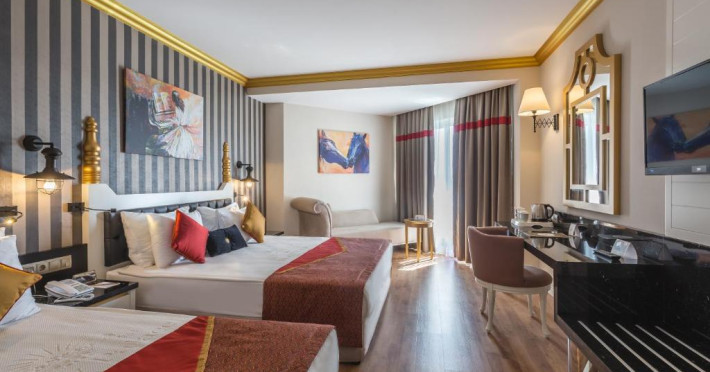 Cazare elegantă: Mary Hotel Side din Side oferă o experiență de 5 stele cu o zonă de plajă privată, centru spa și wellness, saună, centru de fitness, grădină, terasă, restaurant, bar, piscină sezonieră in aer liber și WiFi gratuit.