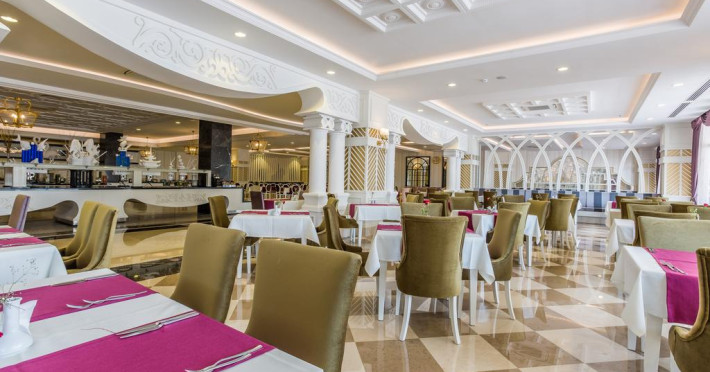 La Mary Palace Hotel oaspeții au la dispoziție un restaurant care servește mâncare în stil bufet și à la carte. Bucătăria turcească de la Mary Palace Hotel propune preparate delicioase care satisfac gusturi diverse. Masa poate fi servită atât în interior, cît si în aer liber, pe terasă, în funcție de vreme. Oaspeţii pot avea diverse băuturi răcoritoare sau alcoolice la bar. De asemenea , în cadrul proprietății, există cafenea și snack bar ideale pentru o gustare rapidă.