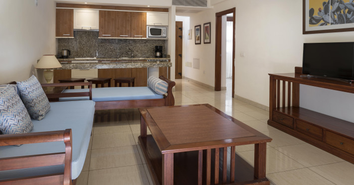 About 1 km from a beach lies the aparthotel Marylanza Suites & spa. The nearest bars and restaurants can be found at a distance of around 300 m. The old town is around 1,5 km away. A supermarket and other shops you reach after around 200 m. On the beach are sun loungers available. The hotel is equipped with a 24h reception (check-in is possible around the clock), a lobby bar, Wi-Fi, internet access, a lift, cash machine, a hairdresser, a jacuzzi, a first aid kit, parking spaces (limited) as well as a TV lounge with satellite TV. In the outdoor area of the property you will find a garden as well as a seasonally heated pool (open all year), where you can rent pool towels for a fee. There is also a separate children's pool. Furthermore, you can relax outdoors on the sun terrace. You can store your valuables in the safe (extra fee), and your luggage in the hotel`s storage room. In addition, the hotel Marylanza Suites & spa is video-monitored 24h a day. For the young hotel guests there is a playground. For very young guests, kid`s chairs can also be provided. There is also a laundry service available at an additional cost to customers. The energy supply is 220 Volts. If you want to explore the holiday region, you can use the car rental service close to the hotel. At the hotel reception, tickets are offered for excursions in the area. American Express, Euro/Master Card and Visa are accepted as means of payment. Due to its barrier-free facilities , such as an automatic hotel door, barrier-free entrances, wheelchair accessible rooms and wheelchair-accessible bathrooms, the hotel is also suitable for wheelchair users. Catering As catering services the hotel offers all-inclusive and half board. Breakfast is offered from the buffet. Lunch and dinner are also served as a set meal or from the buffet. All Inclusive Light includes local alcoholic beverages. As part of the all-inclusive service, international alcoholic beverages (limited) are available around the clock and at no extra charge. For the meals, there are a buffet restaurant (gluten-free dishes) and several bars, a 24h snackbar as well as the pool bar. For dinner, guests are asked to wear appropriate clothing in the restaurant. Distances