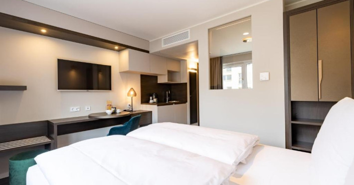 MASEVEN München Messe Trudering se află in München și pune la dispoziție pentru a vedea orașul, un centru de fitness, o grădină, un lounge comun, o terasă și un bar. Se oferă la locație WiFi gratuit in toată proprietatea și prin care liber.