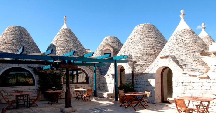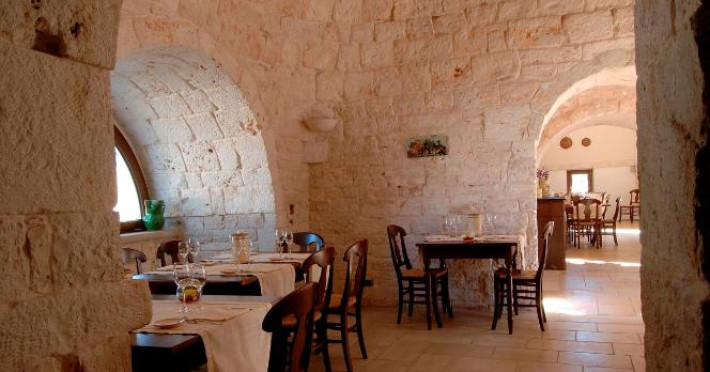 Masseria Chiancone Torricella serveste preparate locale, regionale si nationale intr-o sală de mese sau in casele traditionale de piatră Trulli.